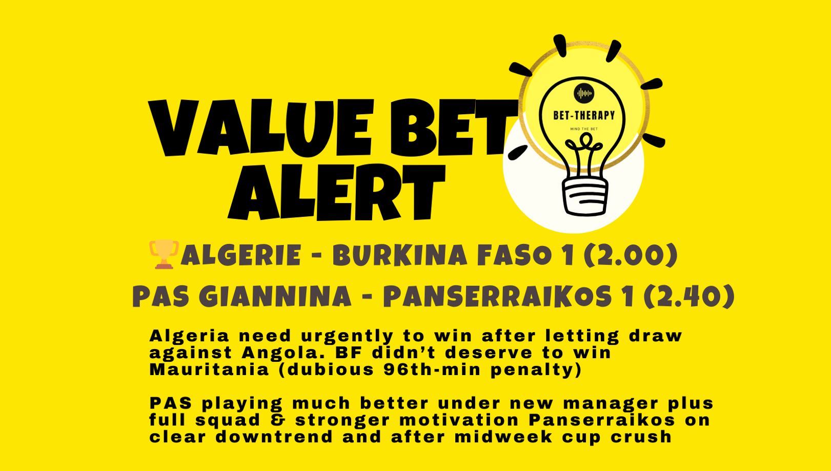 Bet TherapyAlgeria need urgently to win after letting draw against Angola. BF didn’t deserve to win Mauritania (dubious 96th-min penalty)